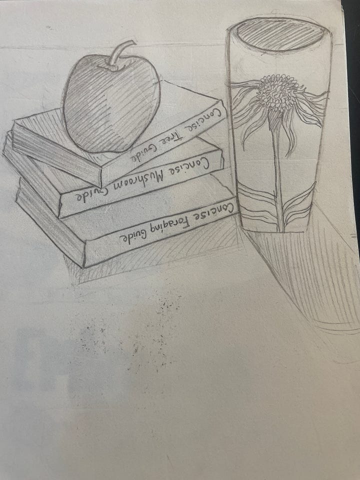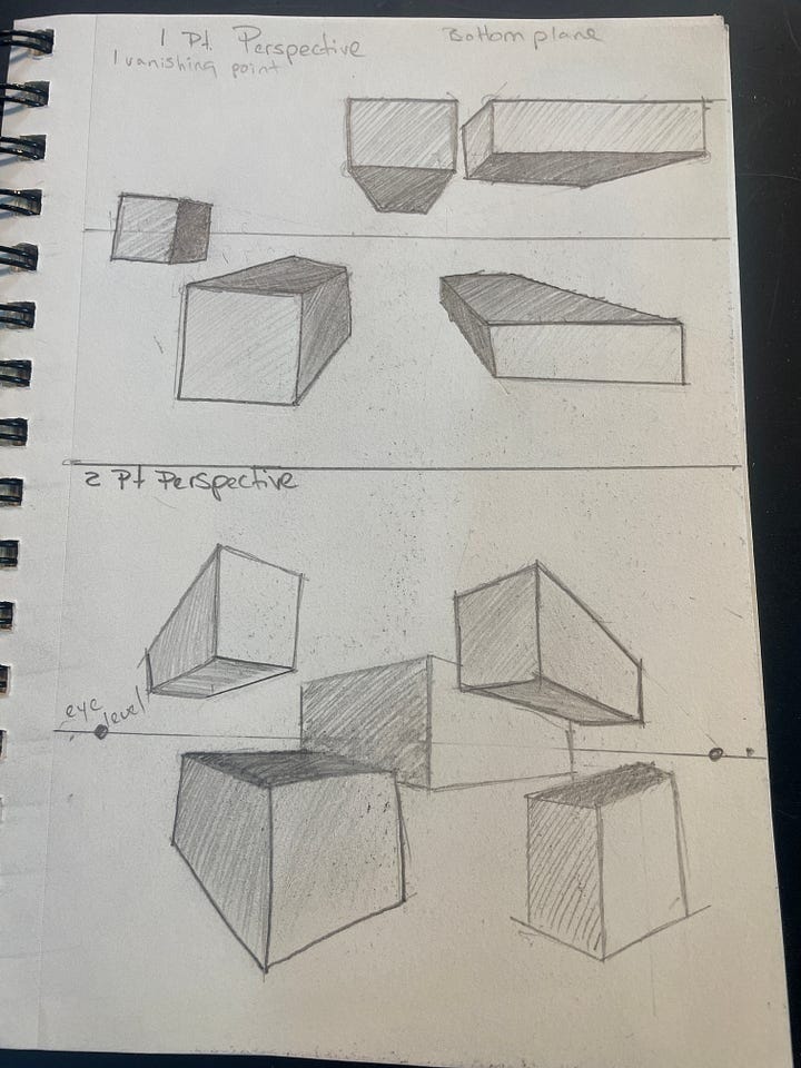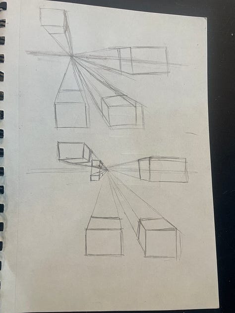 I sketched and watched videos on perspective, then I began to practice drawing without erasing. The practice of letting go of my old habits of erasing or doing it how I think it should be was, in itself, liberating. I let go in my drawing, and I could see improvement happening in the motion of my pencil as well as in my mind.